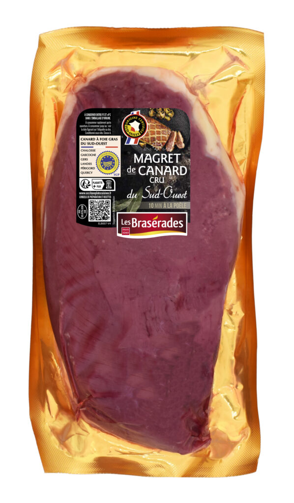 Le magret provient du filet d’un canard gras. Tendre et juteux, il est généralement servi rosé pour en apprécier toute la finesse.